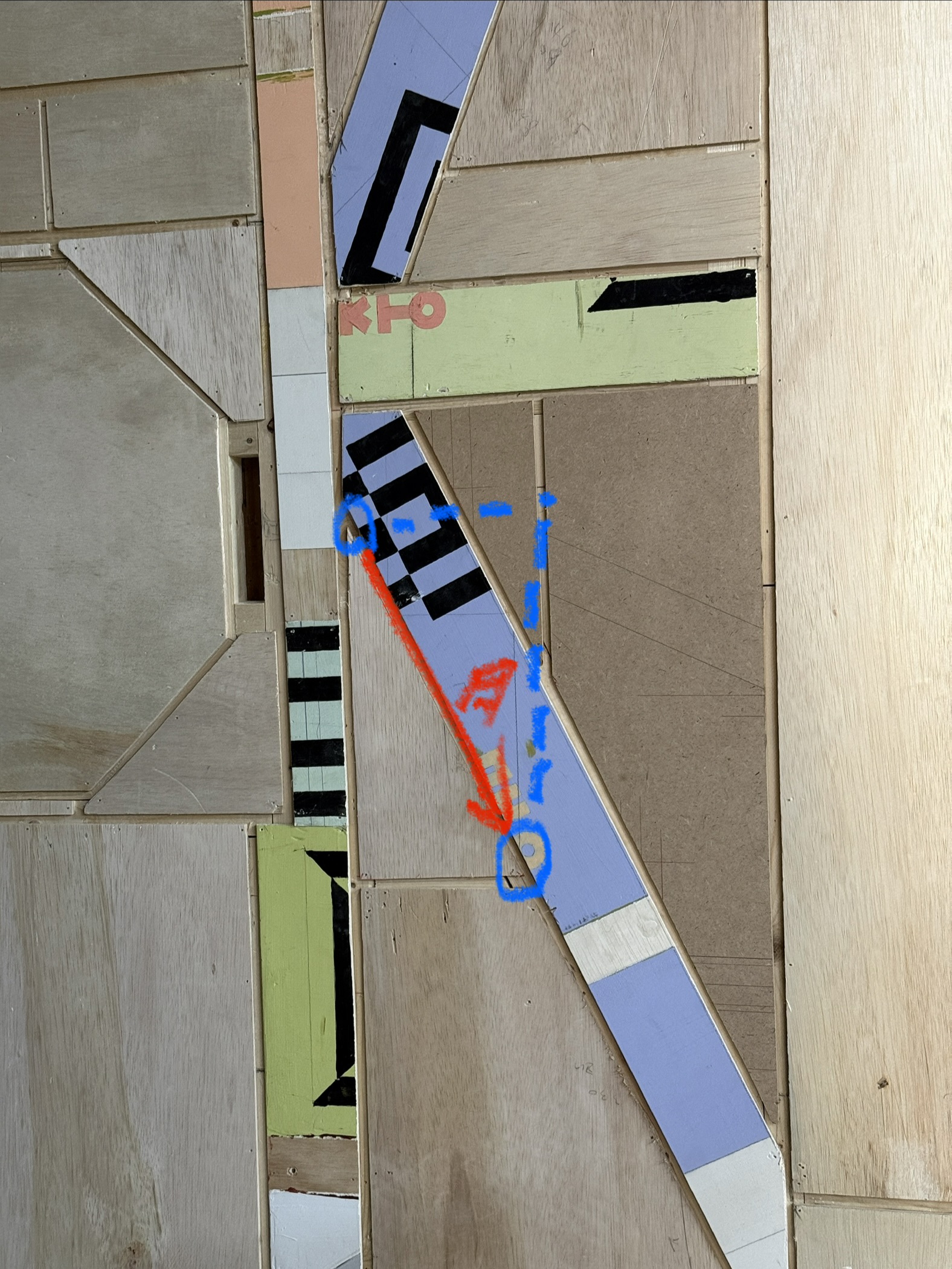 디자인을 넣은 합판 마감 디자인을 하기로 하여, 목재를 원하는 각도로 재단해야했다.