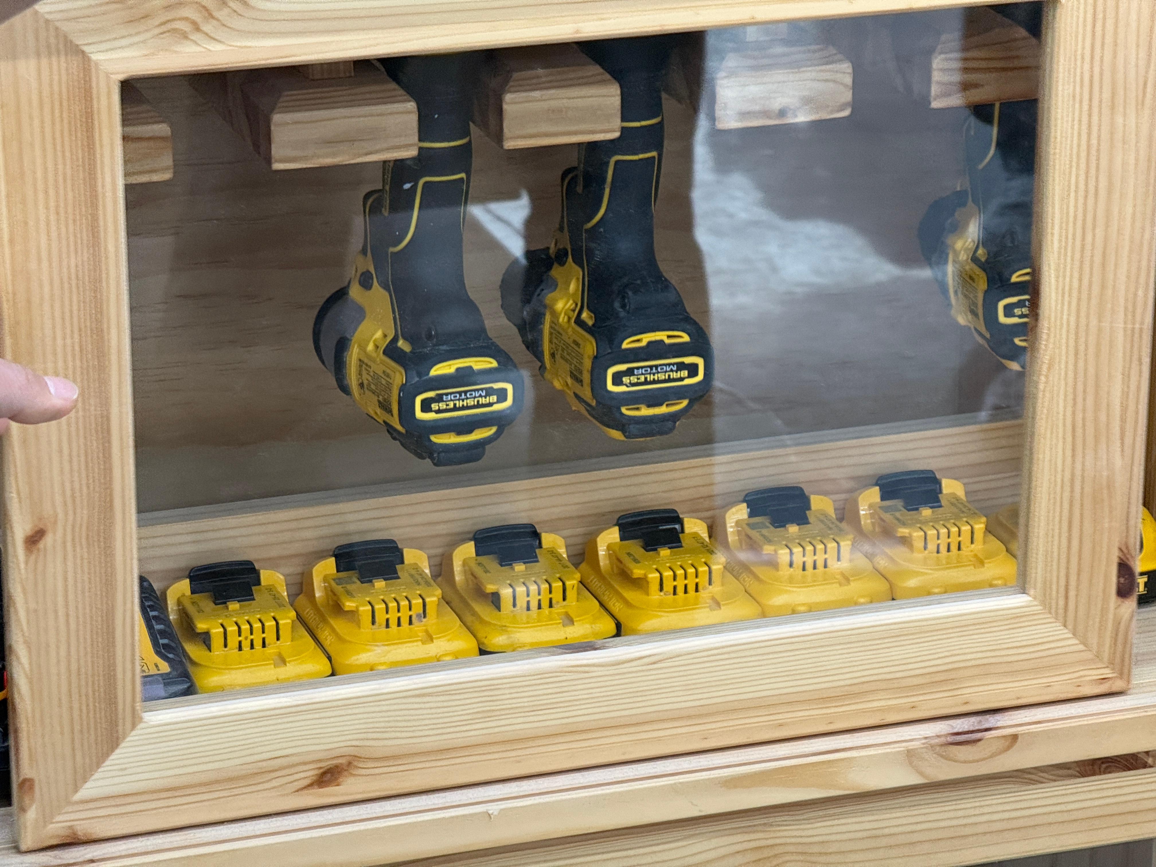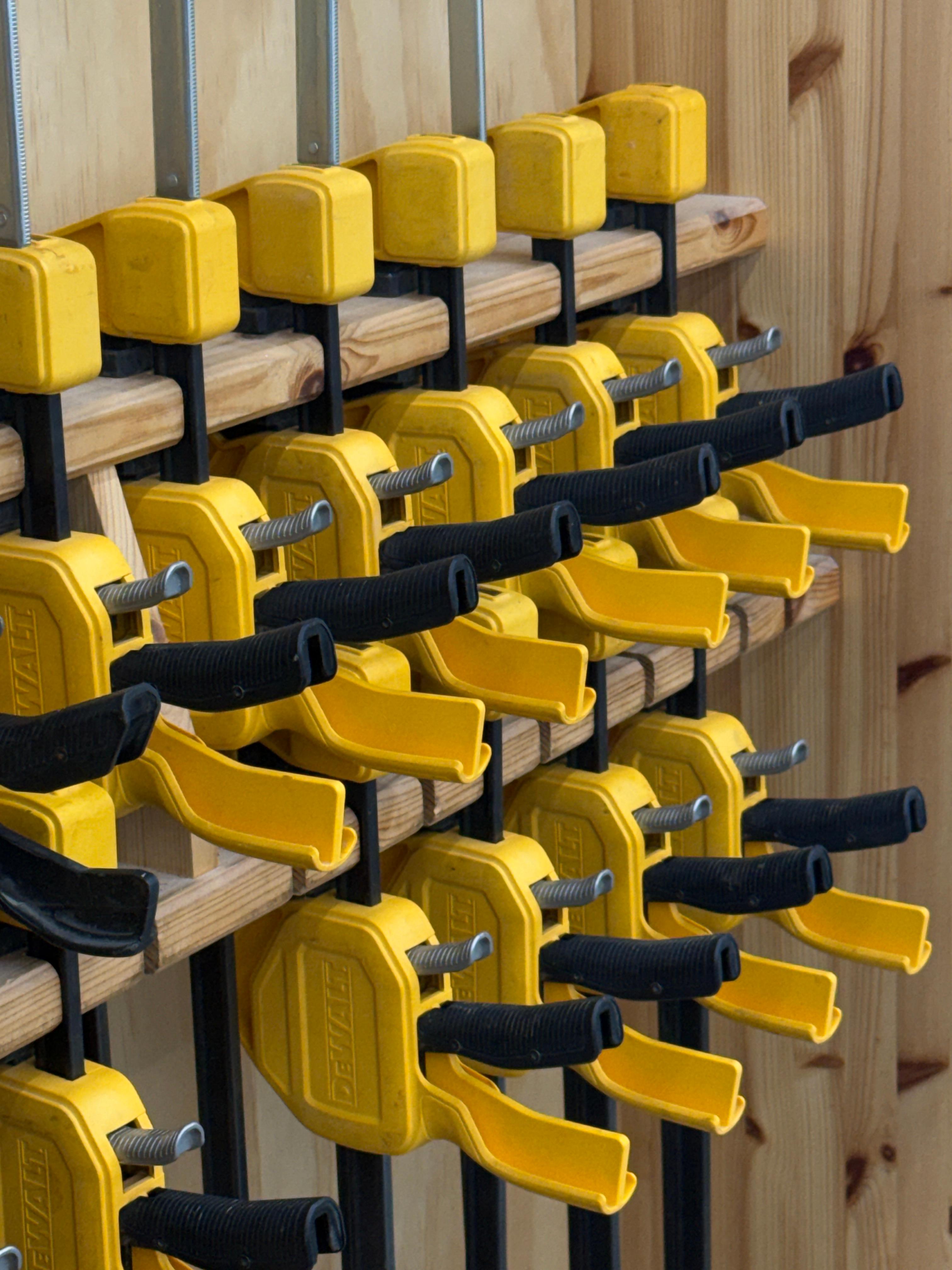 공구가 충분하고, DEWALT 제품이 많다. 드릴 드라이버, 클램프의 통일감이 좋다.