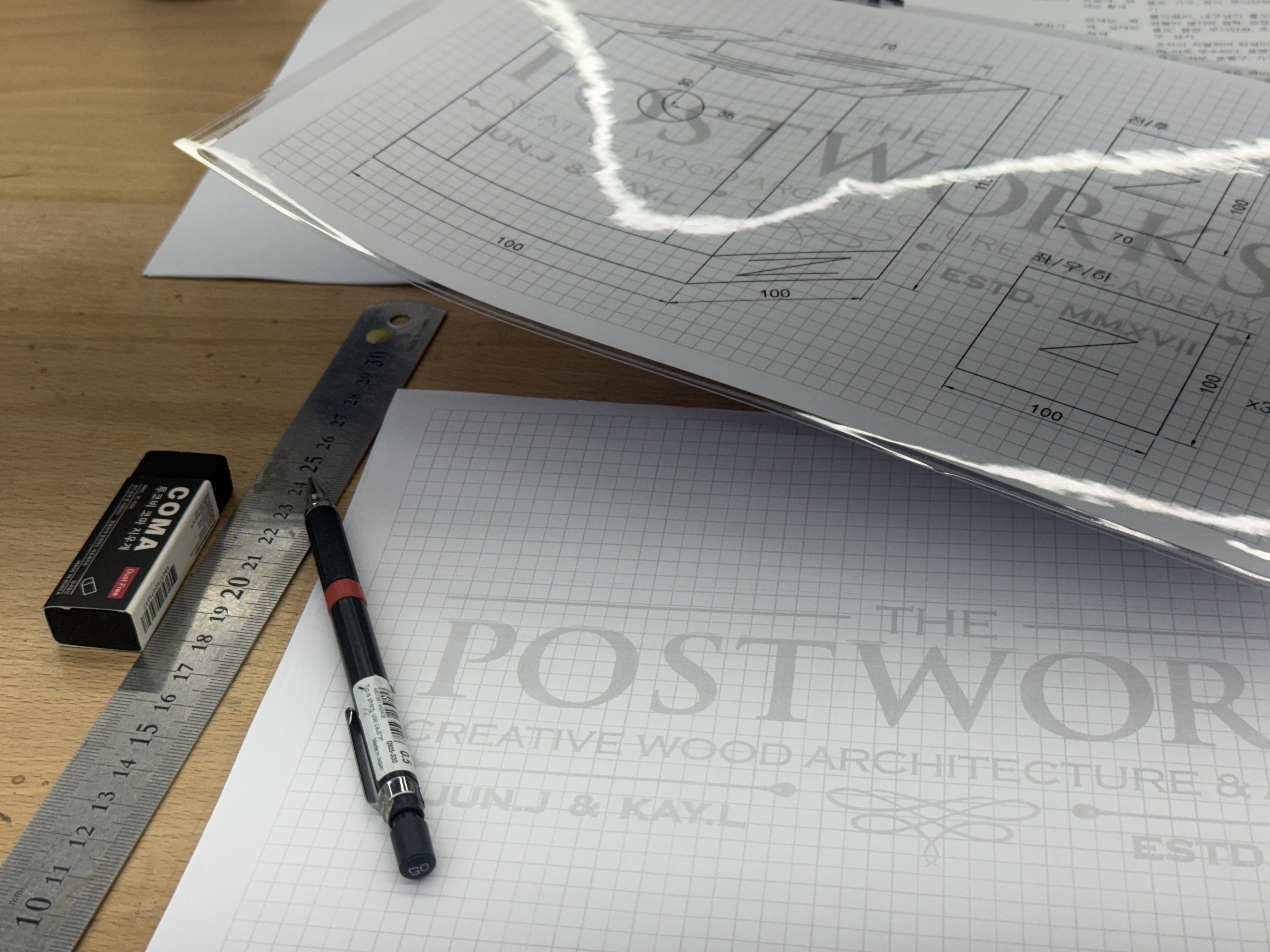보통은 3D 툴, 그 중에서도 스케치업(SketchUp)을 사용하지만 오늘은 그 기본인 손도면을 그려봤다.