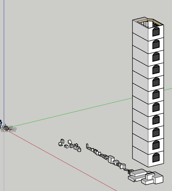 다운받은 디자인은 이렇게 SketchUp으로 import할 수 있고, 위로 쌓아 간단하게 건물도 만들 수 있다.