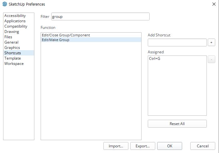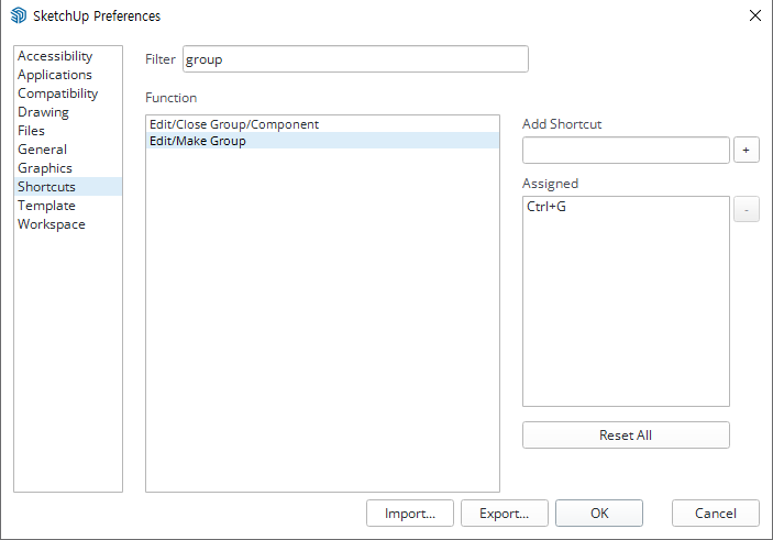 지정했던 shortcut을 import/export를 사용하여 파일화/불러오기가 가능하다.