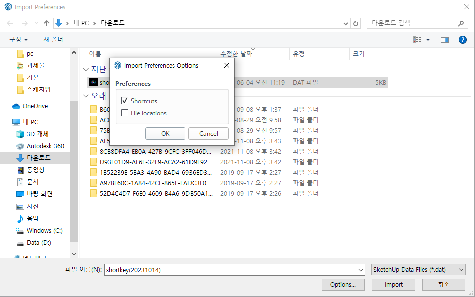 import 불러오기창에서 options 클릭, file locations를 체크해제한 후 불러오기해야한다.