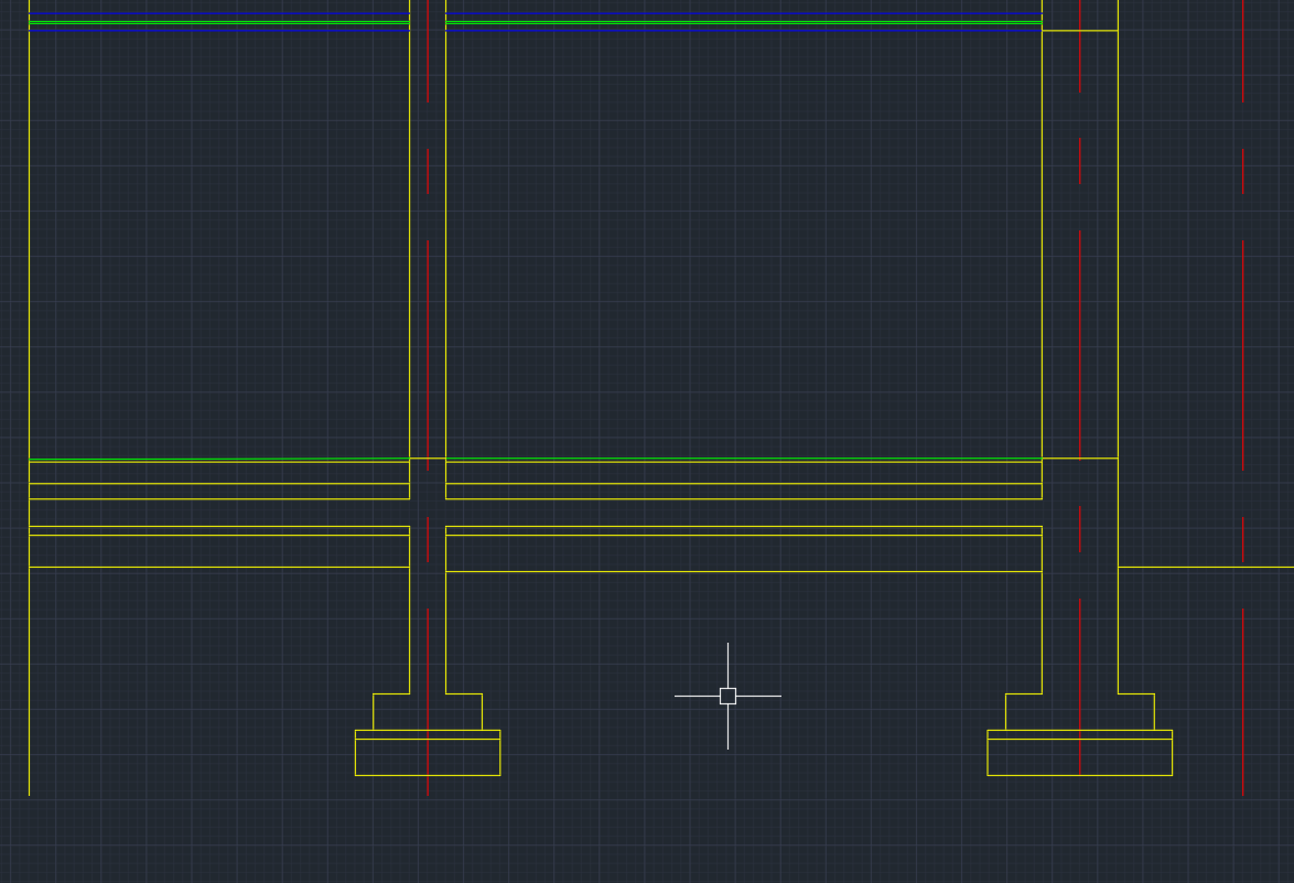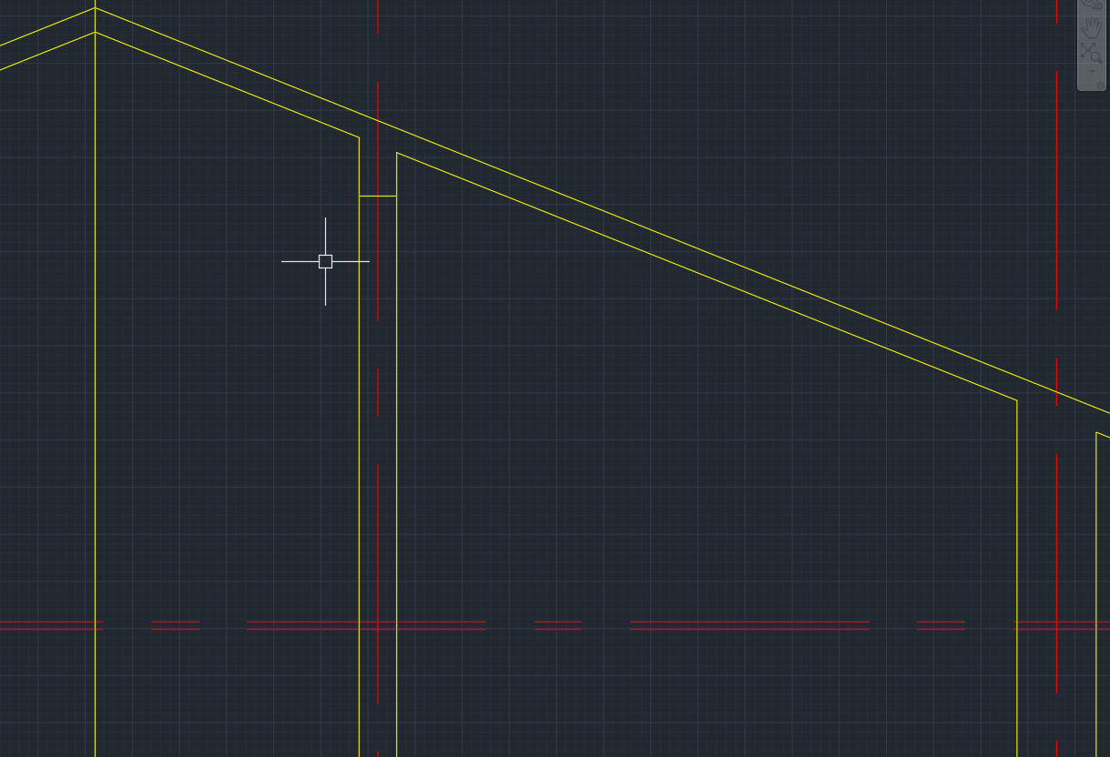 마룻대와 테두리보. 맨윗단에서 400을 내려주어 extend, trim 등을 활용해 만들어준다.