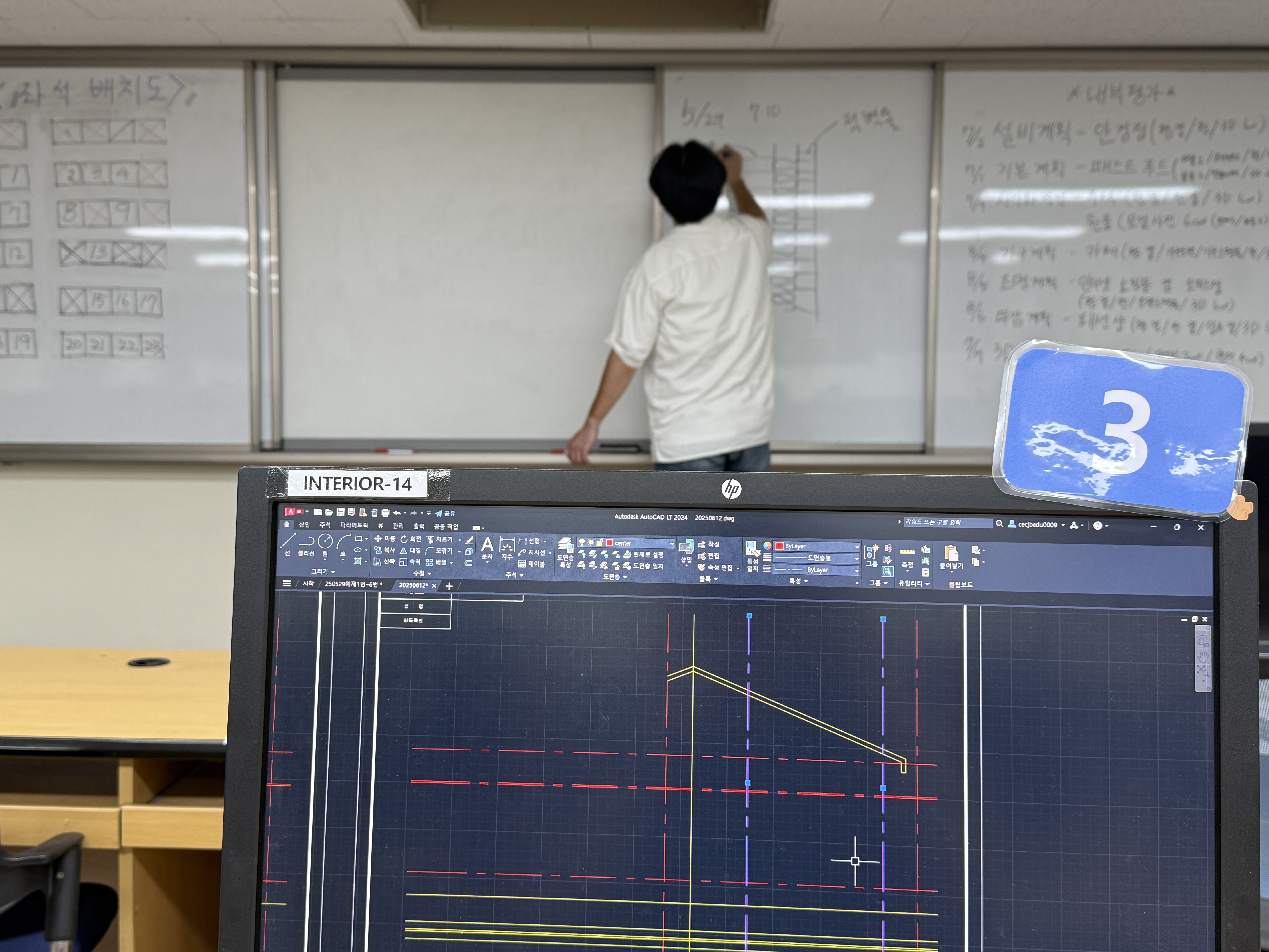 캐드 수업 중 외벽의 구조를 이해하는데 필요한 배경지식을 설명하기위해 화이트보드에 적고계신 교수님😁