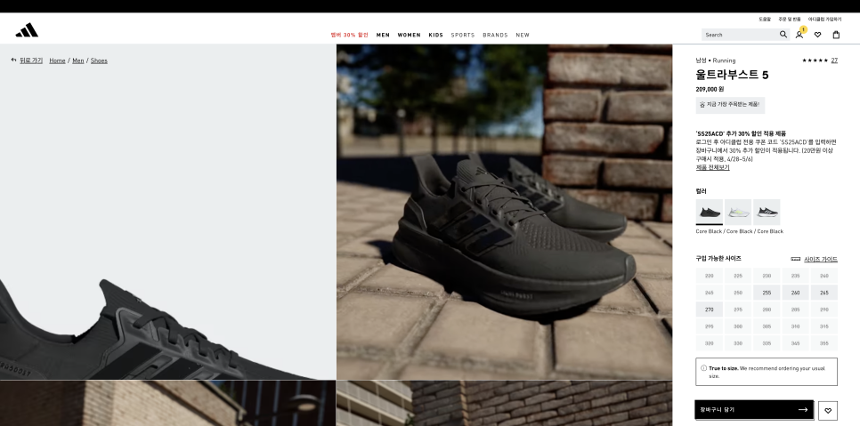 *제가 구매했던 울트라부스트5는 우천시/추운 날씨에 강한 겨울용 모델로, 마감소재가 달랐던 점 참고 부탁드립니다.