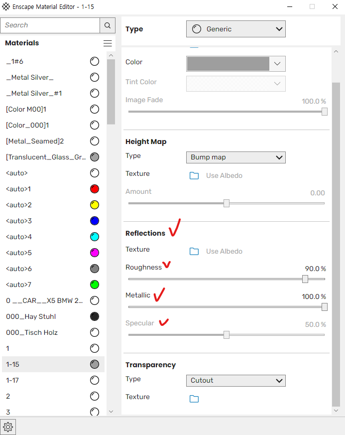*Plastic과 같이 roughness가 일류적이지않은 경우가 많아 직접 설정하기도 한다.