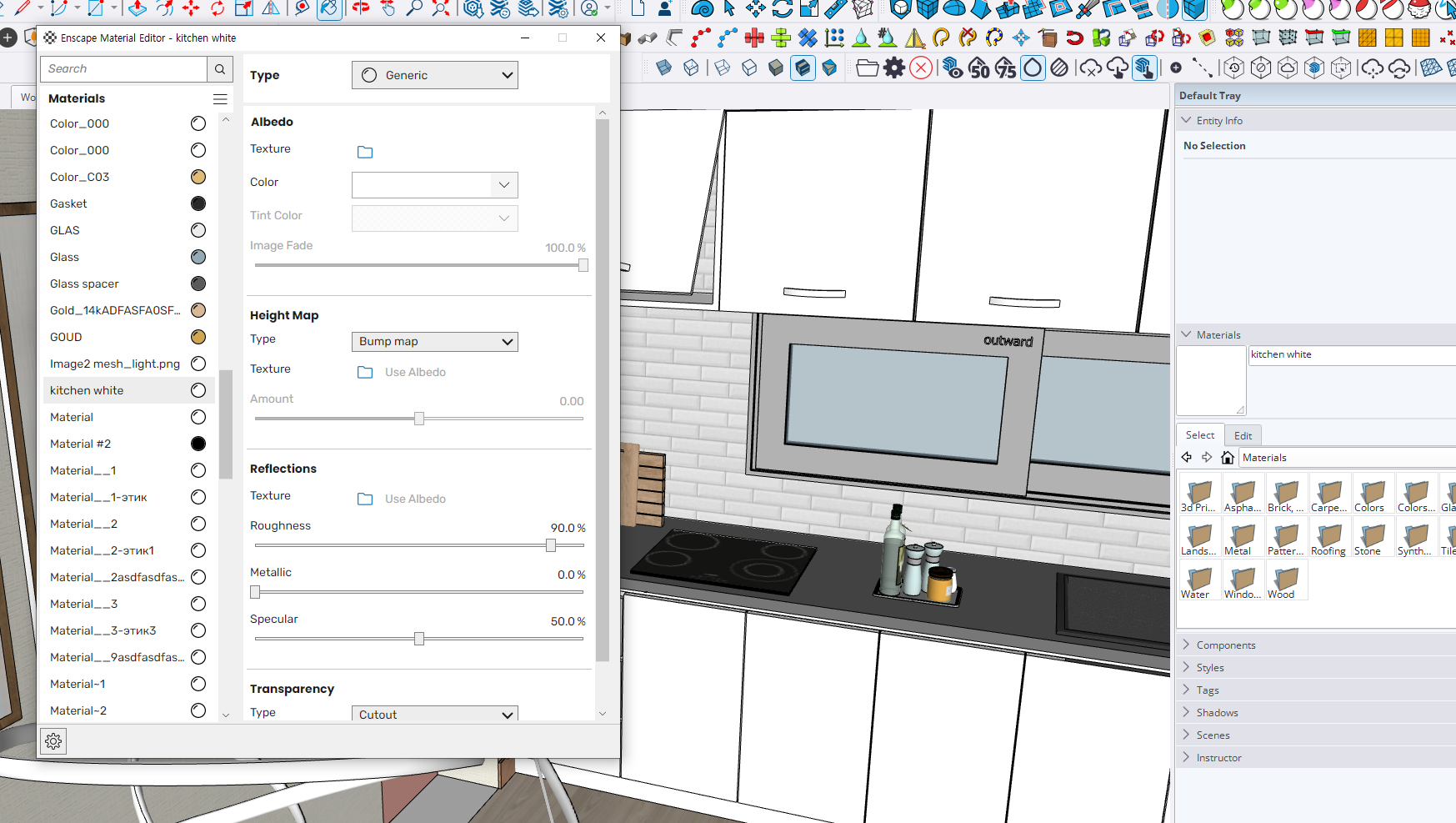 material 창2개(enscape material)를 함께 켠다.