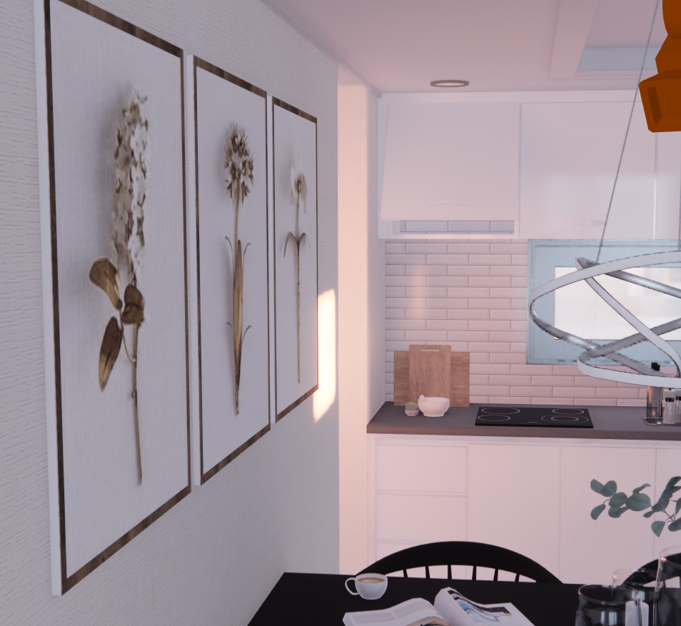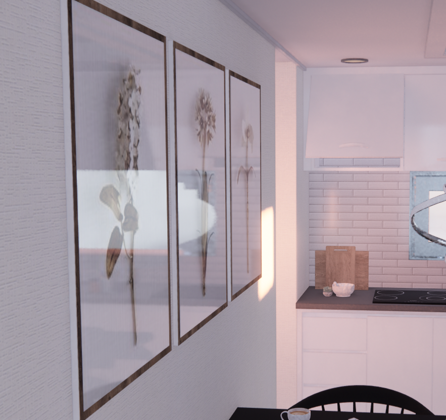 Roughness 조정만으로도 액자 등의 비침/디테일이 살아난다.