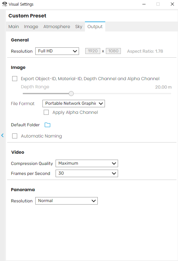 visual setting - Output